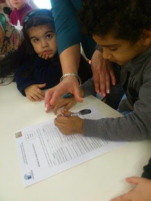 Os testemunhos onde serão registadas opiniões e sugestões, percorrerão as escolas dos municípios participantes que serão responsáveis por os passar, da forma mais sustentável que conseguirem, ao próximo Município. E assim foi ... o testemunho chegou ao Município de Sesimbra por uma delegação vinda do Município de Almada e foi uma delegação da nossa escola (por ser a Eco-Escola mais afastada da sede do nosso Município) constituída por 4 alunos de cada turma (eleitos pelos colegas) uma Educadora e uma Assistente e por elementos da Câmara Municipal de Sesimbra; que o recebeu na estação da Fertagus em Coina. A nossa delegação utilizou o transporte publico, oferta da Fertagus, para se deslocar até ao local. Foi muito divertido!! E pelo caminho, sempre muito atentos, fomos logo registando as nossas opiniões sobre o que poderia ser melhorado!