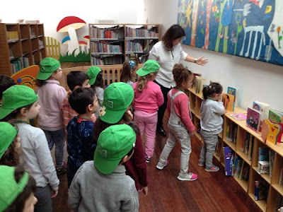 Fomos muito bem recebidos pela Inês e pela Sónia! Que nos explicaram como nos podemos fazer sócios (basta os pais dirigirem-se a este espaço, fazer a inscrição com comprovativo de morada e é grátis!!) e que a "Hora do Conto" também está na Quinta do Conde, todas as terças feiras a partir das 15h30, no Polo de Leitura!!